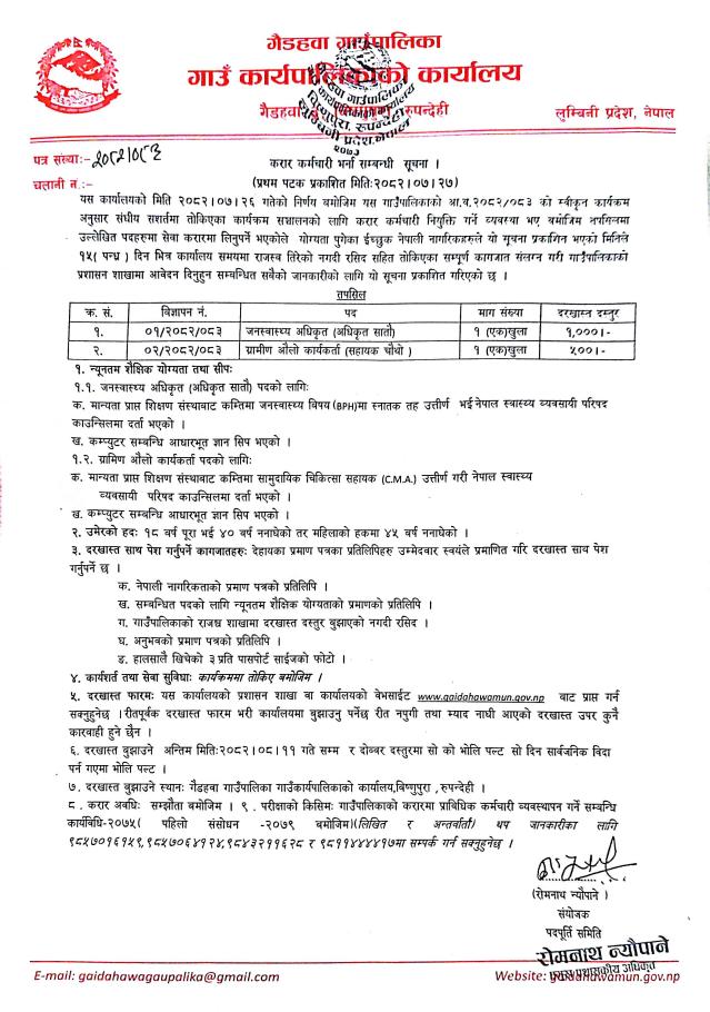 करारमा कर्मचारी भर्ना सम्बन्धी सूचना ।