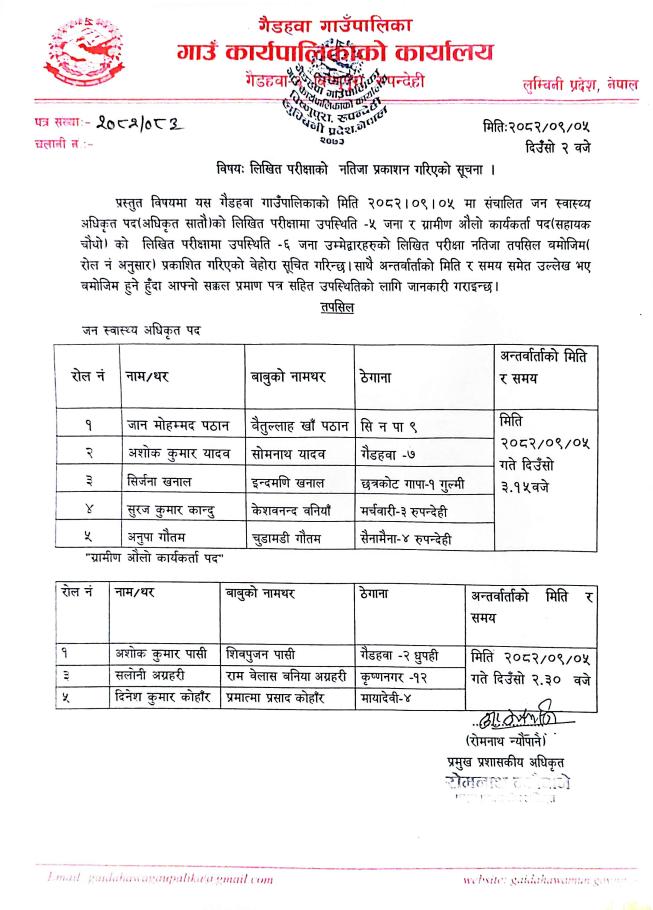 लिखित परिक्षाको नतिजा प्रकाशन गरिएको सूचना ।