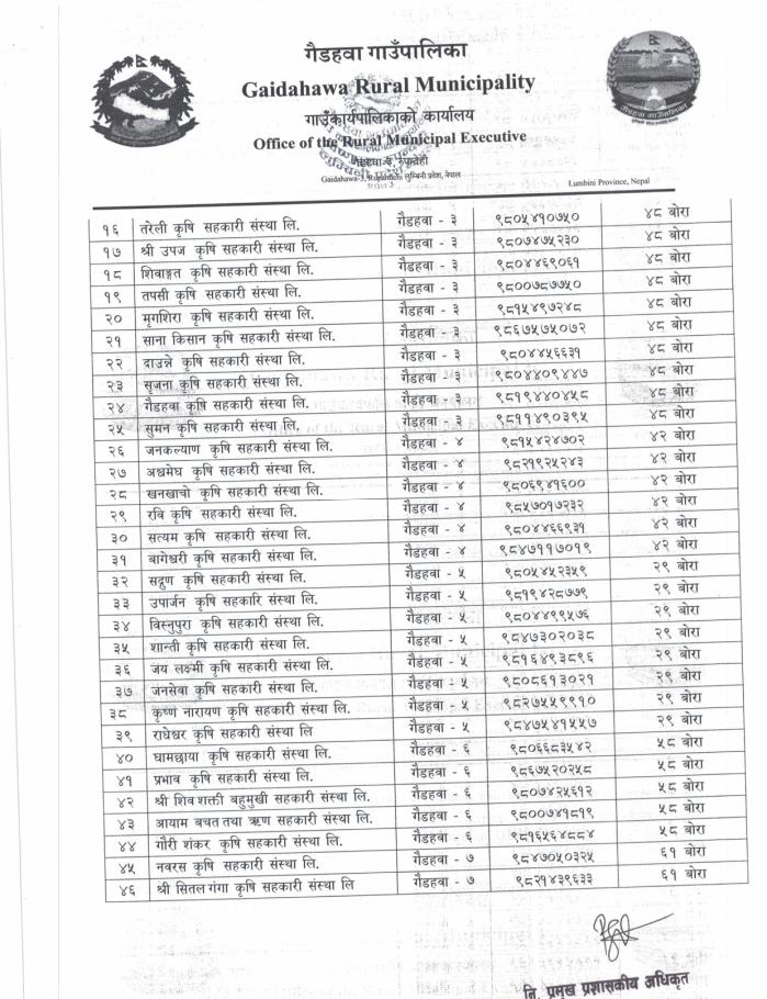 गैडहवा गाउँपालिका बिष्णुपुरा - ३, रुपन्देही इमेल - gaidahawagaupalika@gmail.com फेसबुक पेज - https://www.facebook.com/GaidahawaGaupalikaOfficial/ ट्वीटर पेज - https://twitter.com/HelloGaidahawa