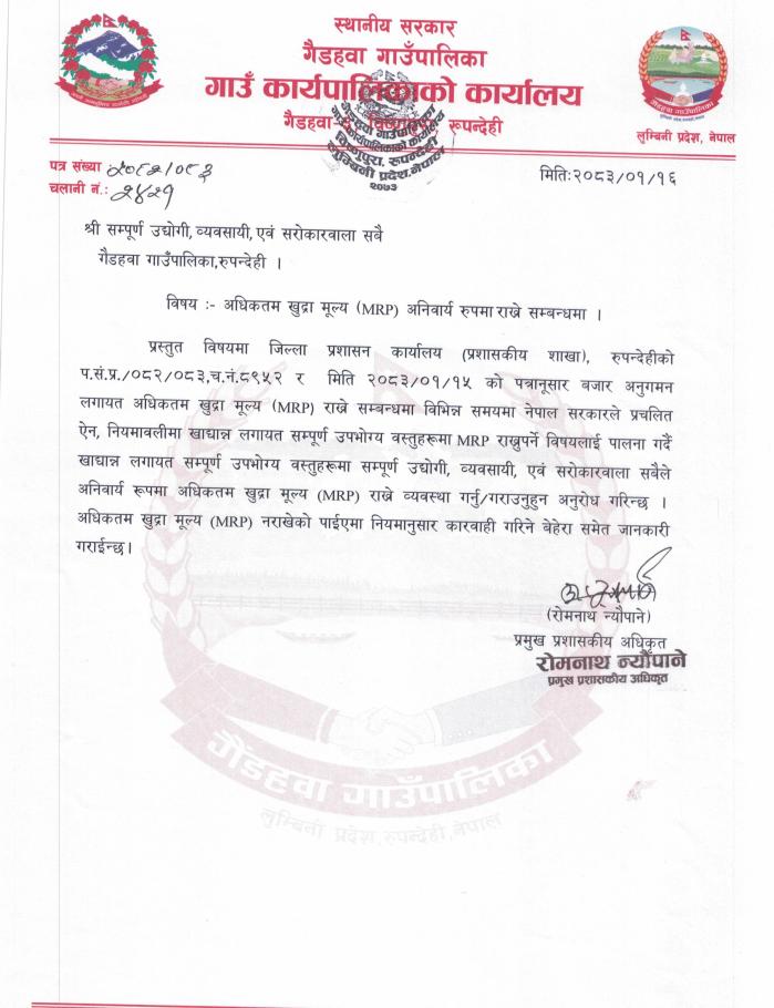 अधिकतम खुद्रा मुल्य (MRP) अनिवार्य रुपमा राख्नु हुनको लागि जानकारी।