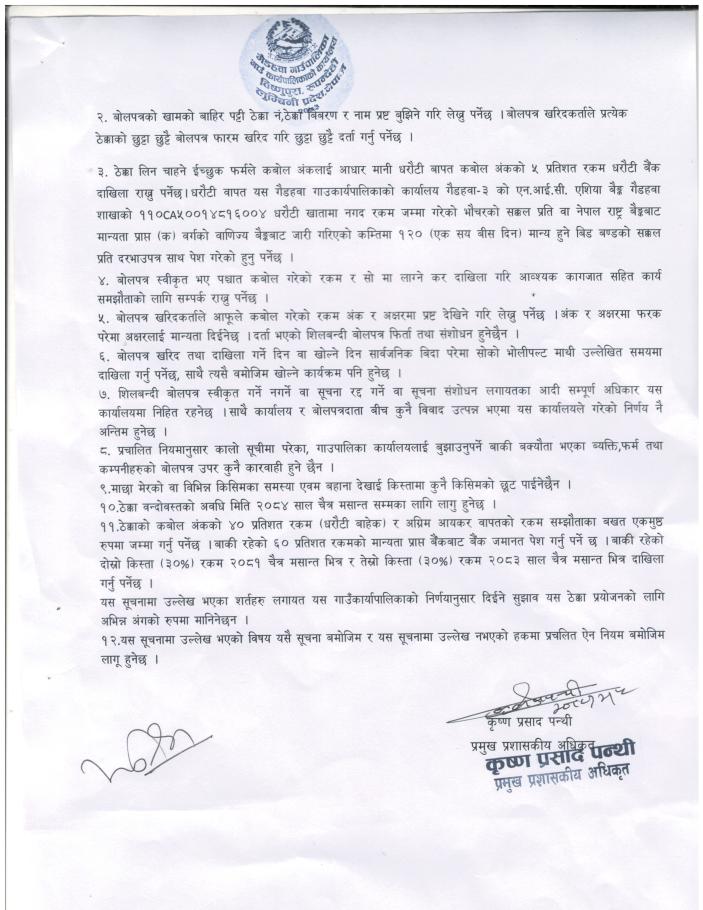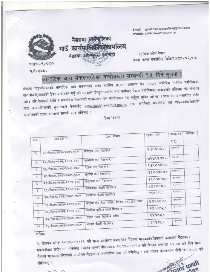 आन्तरिक आय (ठेक्का बन्दाेबस्त) सम्बन्धी सूचना।