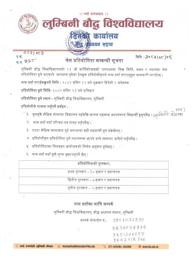 चेस प्रतियोगिता सम्बन्धी सूचना ।