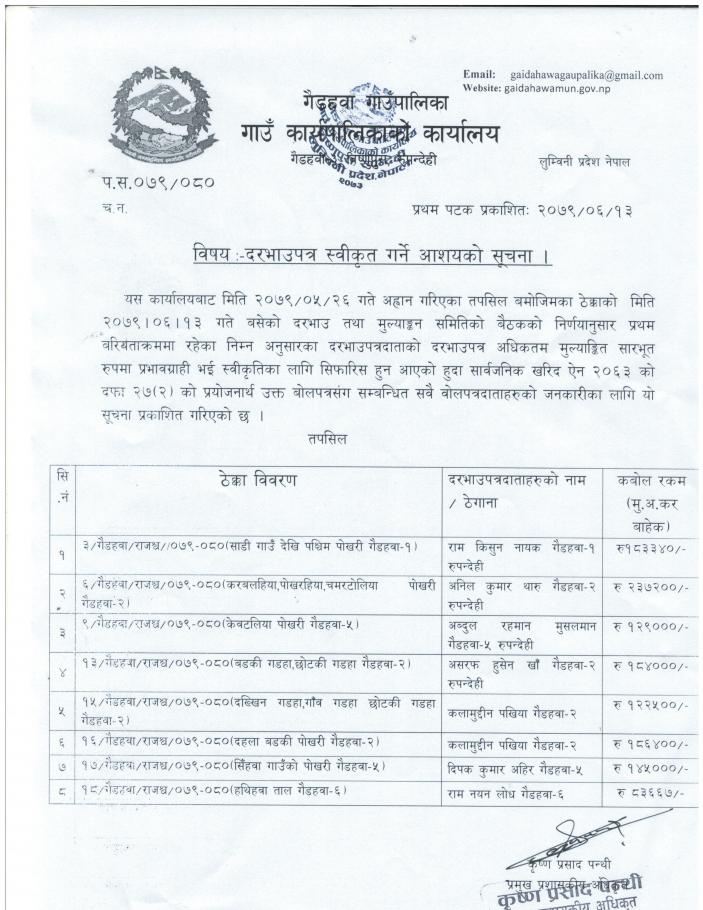 दरभाउपत्र स्वीकृत गर्ने आशय सम्बन्धी सूचना।