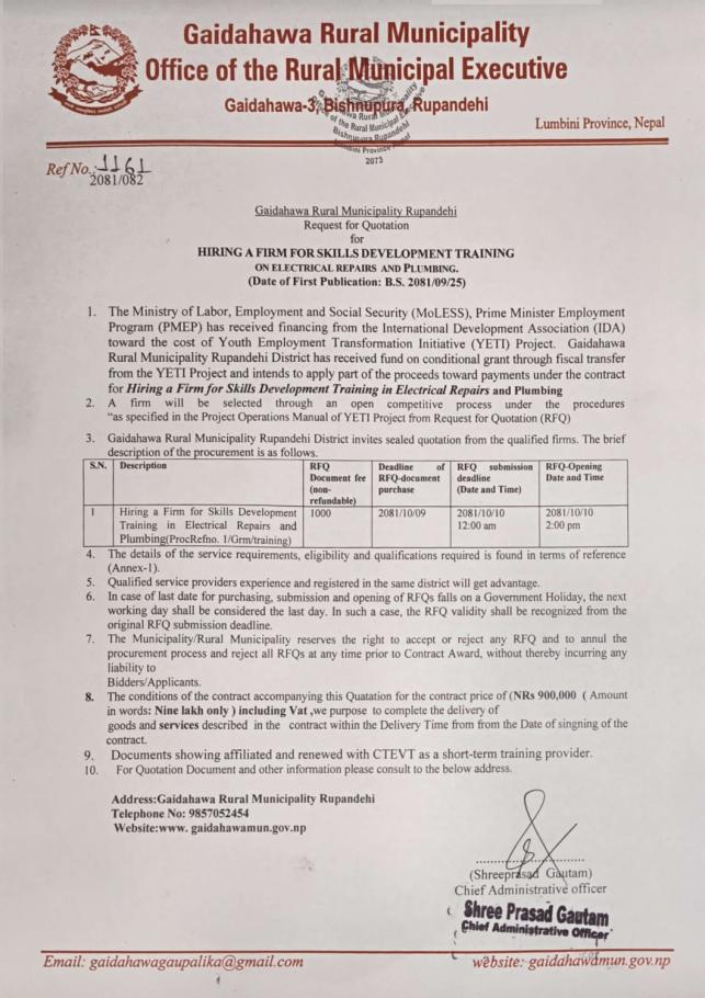 प्रस्ताव आह्वान सम्बन्धी सूचना