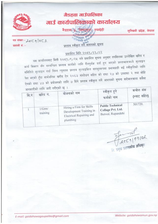प्रस्ताव स्वीकृत गर्ने आशयको सूचना ।