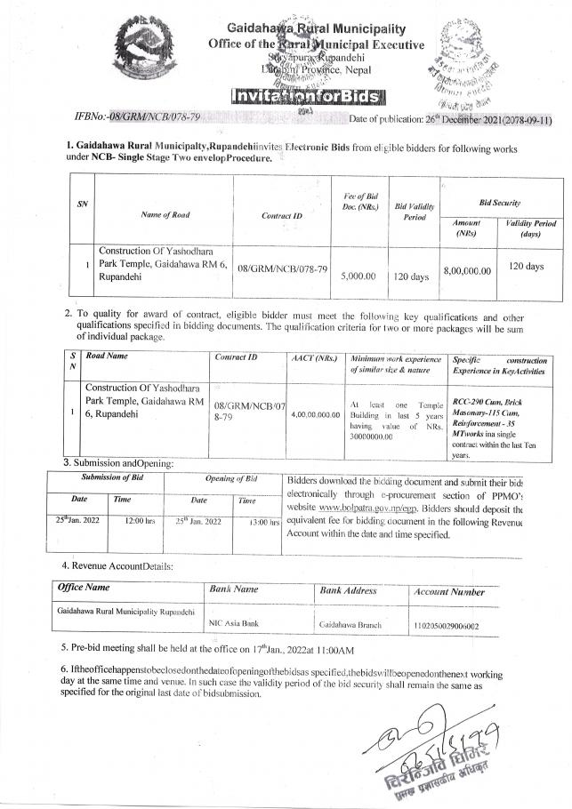 विद्युतीय बोलपत्र आव्हानको सूचना ।