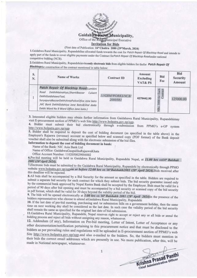 विद्युतीय बोलपत्र (E-Bidding) आह्वान सम्बन्धी सूचना ।