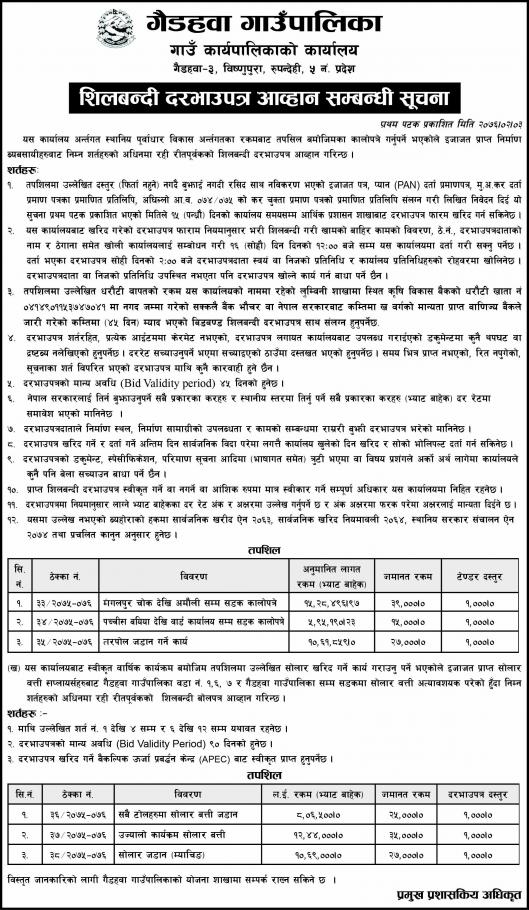 शिलबन्दी दरभाउपत्र आव्हान सम्बन्धि सूचना