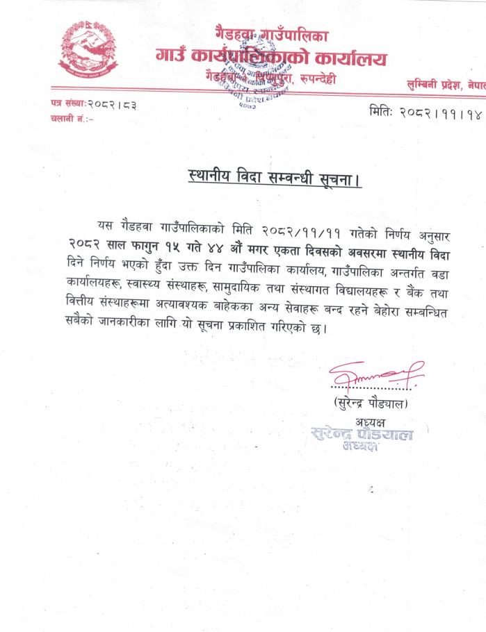 सार्वजनिक विदा सम्बन्धी सूचना ।।