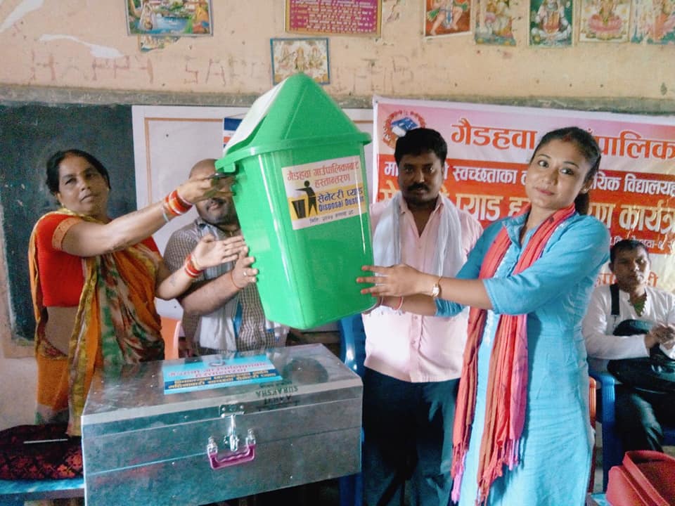 मिति २०७५ साल असार २८ गते बिहिवारका दिन गैडहवा गाउँपालिकाकाे अायाेजनामा गाउँपालिका अन्तरगतका सामुदायिक विद्यालयहरुमा महिनावारी स्वच्छताका लागि सेनेटरी प्याड, प्याड व्यवस्थापनका लागि बाकस, प्याड डिस्पाेजल डस्टबिन हस्तान्तरण कार्यक्रम सम्पन्न भयाे ।