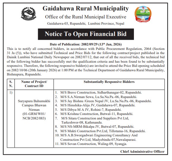 Notice to Open Financial Bid.
